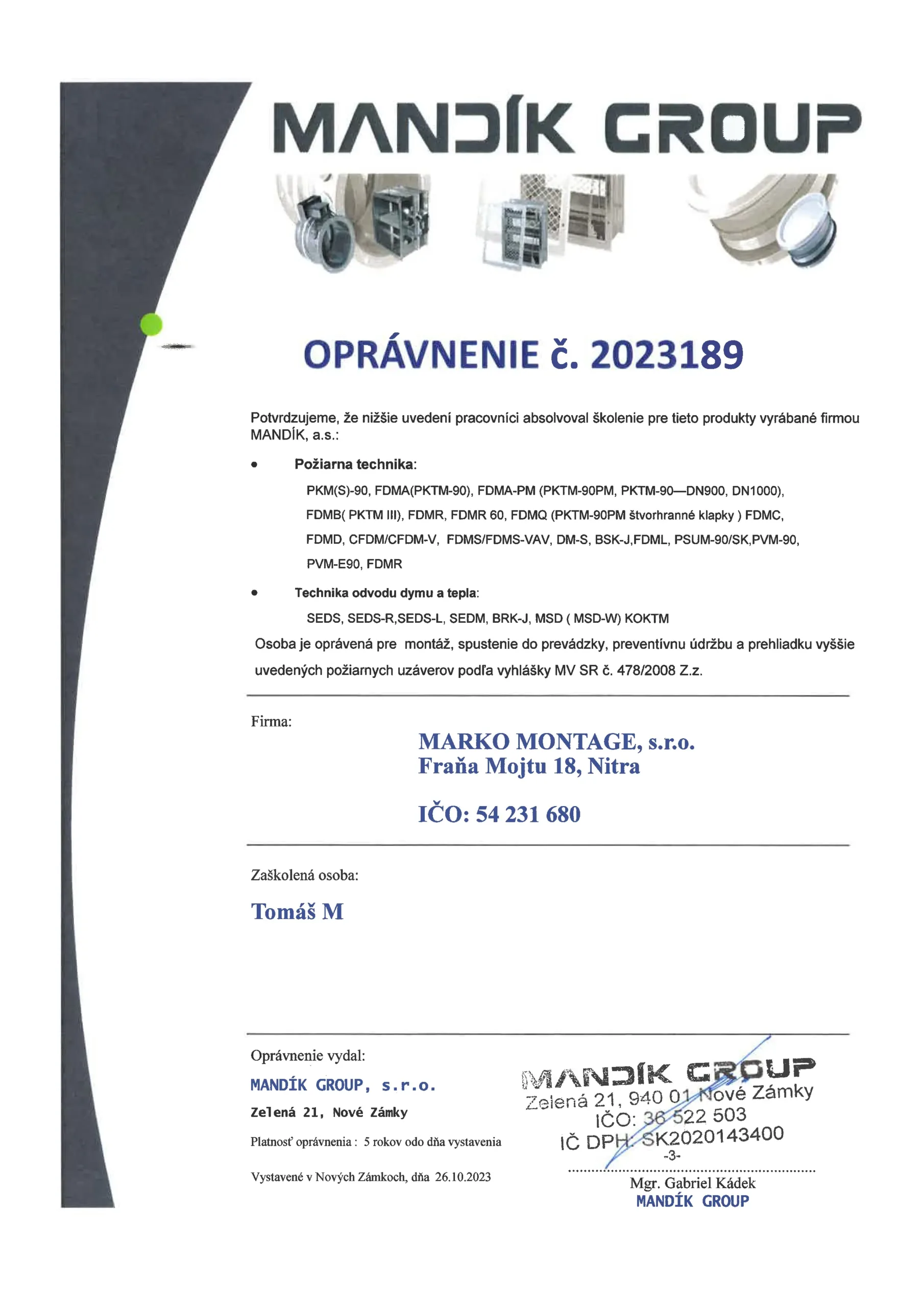 Oprávnenie č.2 Tomáš M.