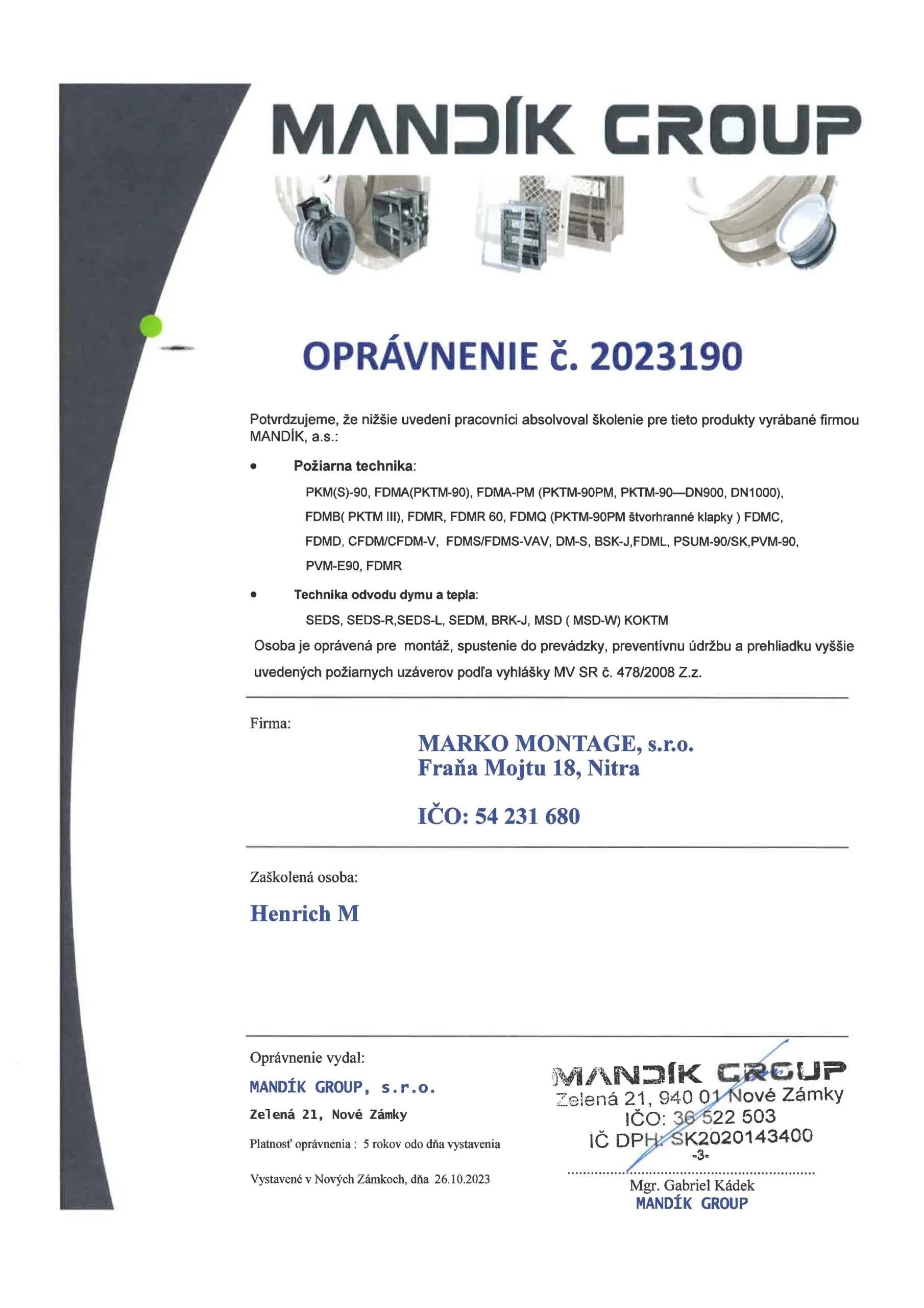 Oprávnenie č.3 Henrich M.